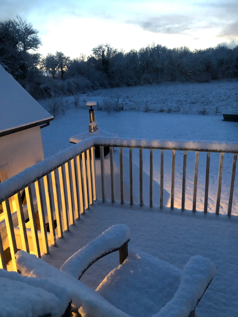 Schnee wie leicht gezuckert, ein paar Zentimeter gibt es im irischen Winter öfters, aber so richtig viel Schnee eher selten – sehr selten. Nun war der letzte Winter, als Thorsten noch alleine hier lebte eine Ausnahme. Im Februar 2018 erfasste Irland und England eine Kältewelle mit dem Namen Beast from the East und der Sturm Emma vom Atlantik kam zeitgleich daher. Es waren die schlimmsten Schneefälle seit 1982 die beide Inseln zum erliegen brachte.