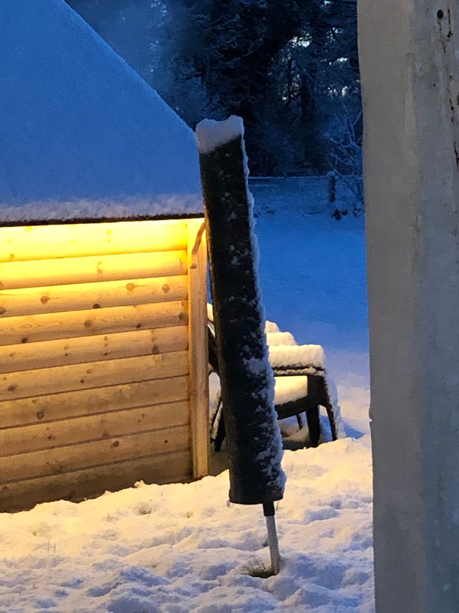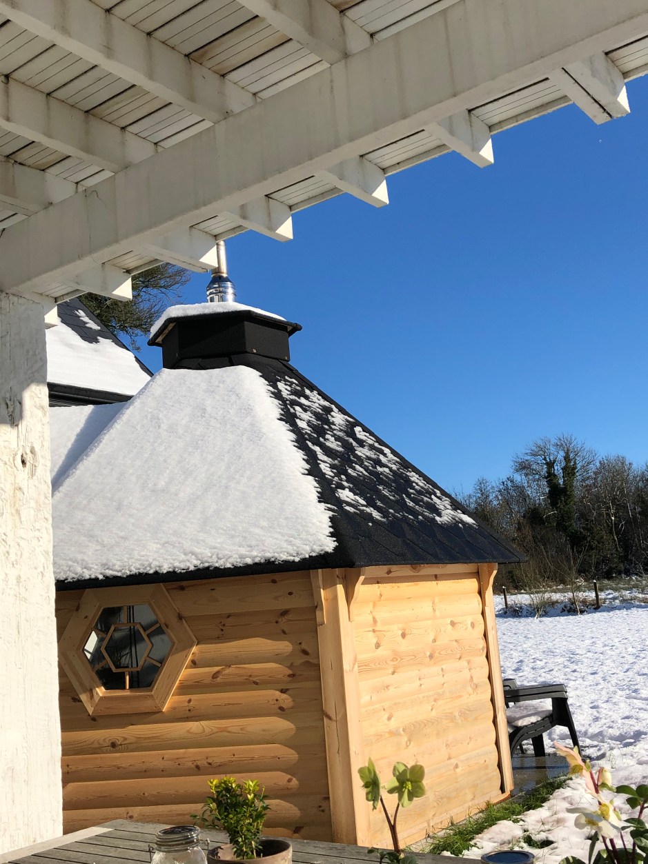 Sauna schon halb ohne Schnee