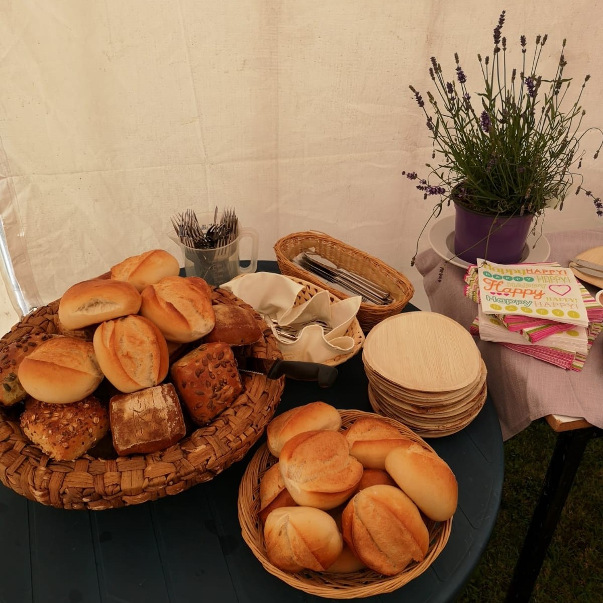 Zum Grillfest blieb es regenfrei und so konnten wir draußen sitzen. Es wurde gegessen, getrunken und reingefeiert in die Null. Für einige war die Nacht kurz bis es wieder zum gemeinsamen Geburtstagsfrühstück in den Garten ging.