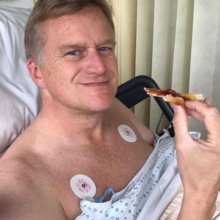 Am 21. Juni um 9:30 (wie beim Hund ;-))) ging es nach der Anmeldung los. Ich habe ihn sozusagen in die Obhut der Blackrock Clinic in Dublin in die Hände vom Prof. John Quinlan gegeben und durfte ihn um 16:30 (wieder wie beim Hund ;-))) im Aufwachraum in Empfang nehmen. Natürlich erst nach Tee und Toast.
