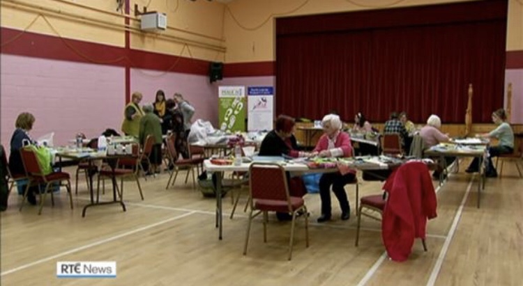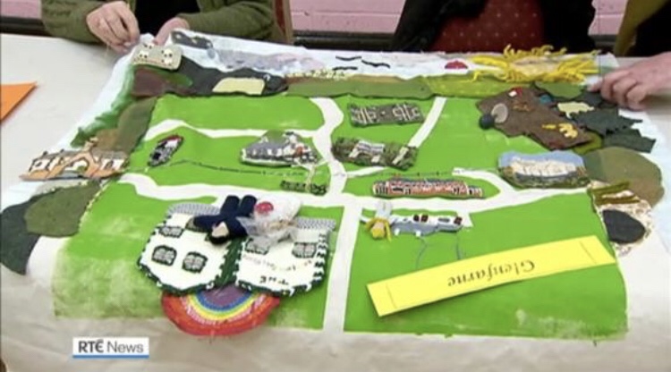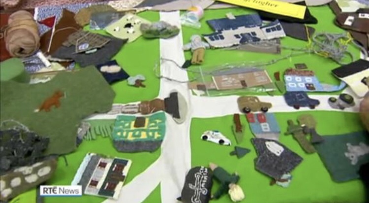 Wenn es mir einmal so richtig fad werden sollte, dann schließe ich mich einer Handarbeitsgruppe an, die in diesem Land sehr gerne gemeinsam an Quilt Decken bastelt. Gerne auch zu einem bestimmten Thema. Wie auf den Fotos zu sehen ist, wurden in dem Projekt Strassen und Häuser gebastelt die durch die eventuelle Teilung von Nordirland zur Republik Irland betroffen wären. Sozusagen politische Arbeit in Handarbeit.