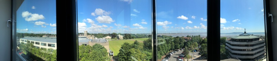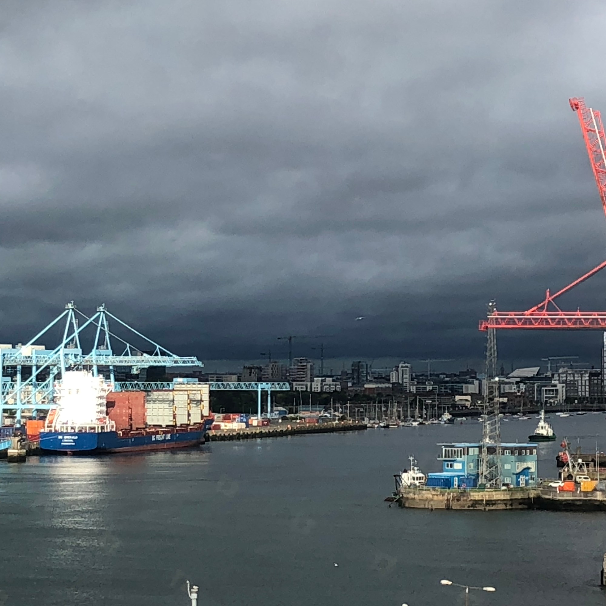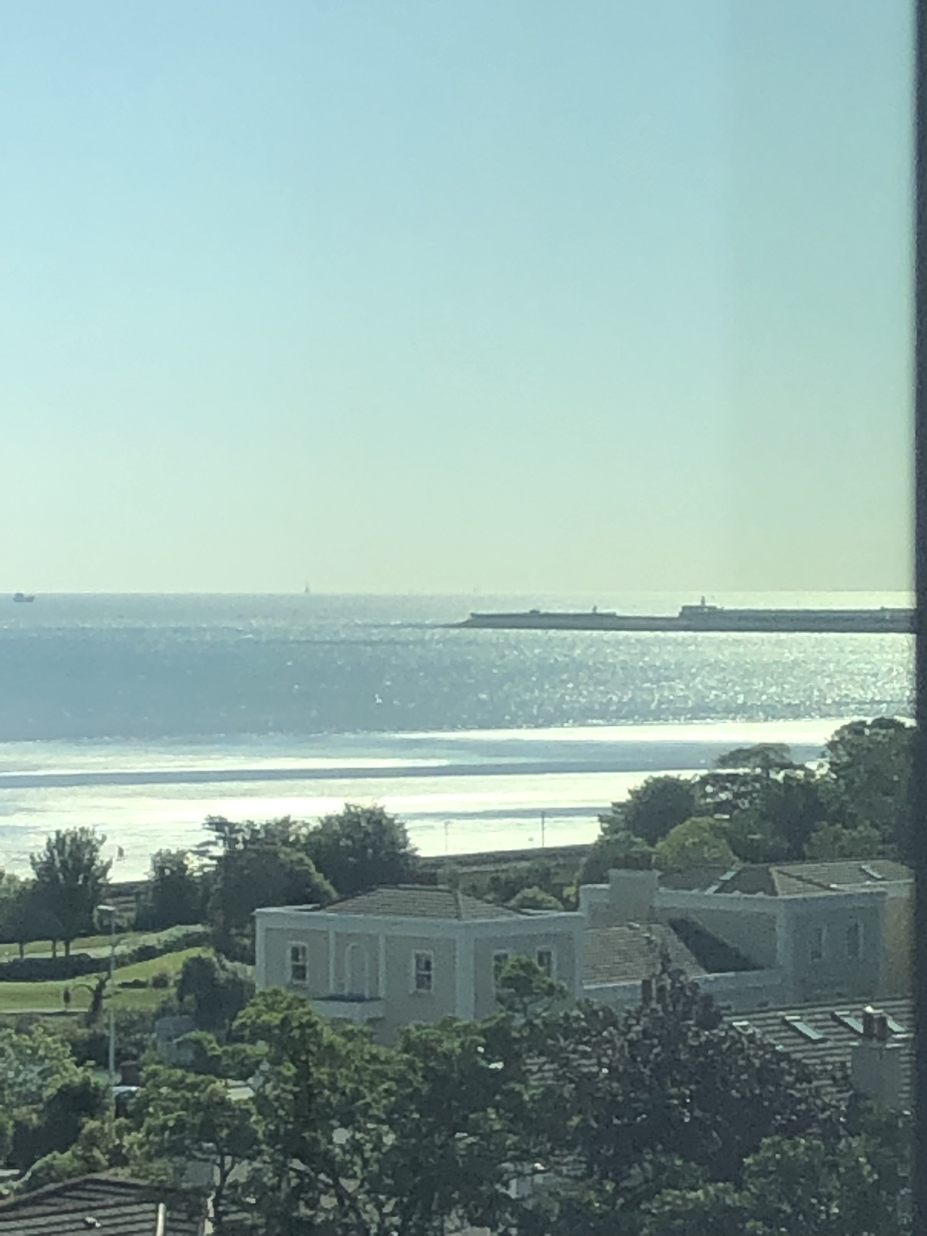Impressionen aus dem Warteraum der Blackrock Clinic mit einer Panorama Fensterfront und einem gigantischen Ausblick auf den Dubliner Hafen und auf Ebbe und Flut während der Wartezeit.