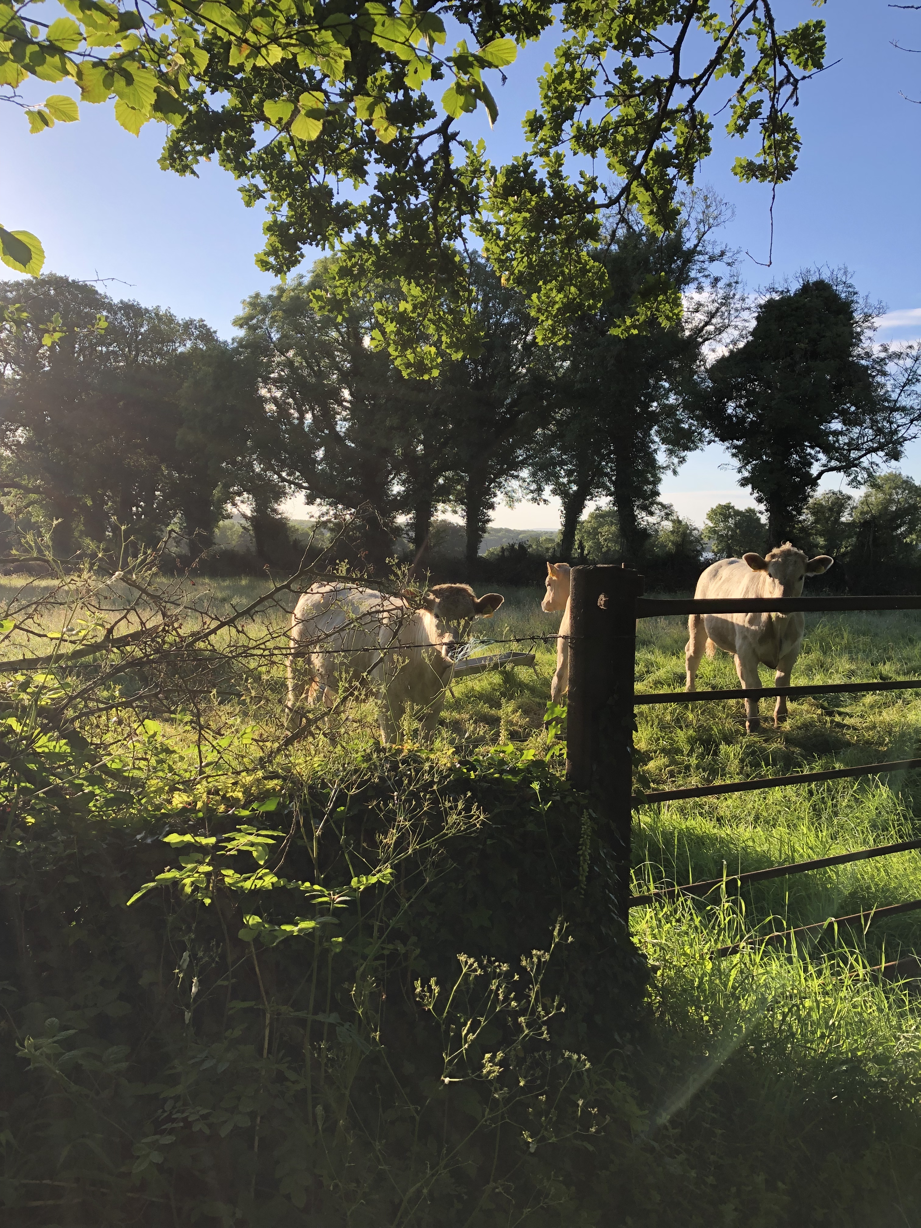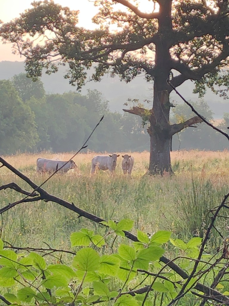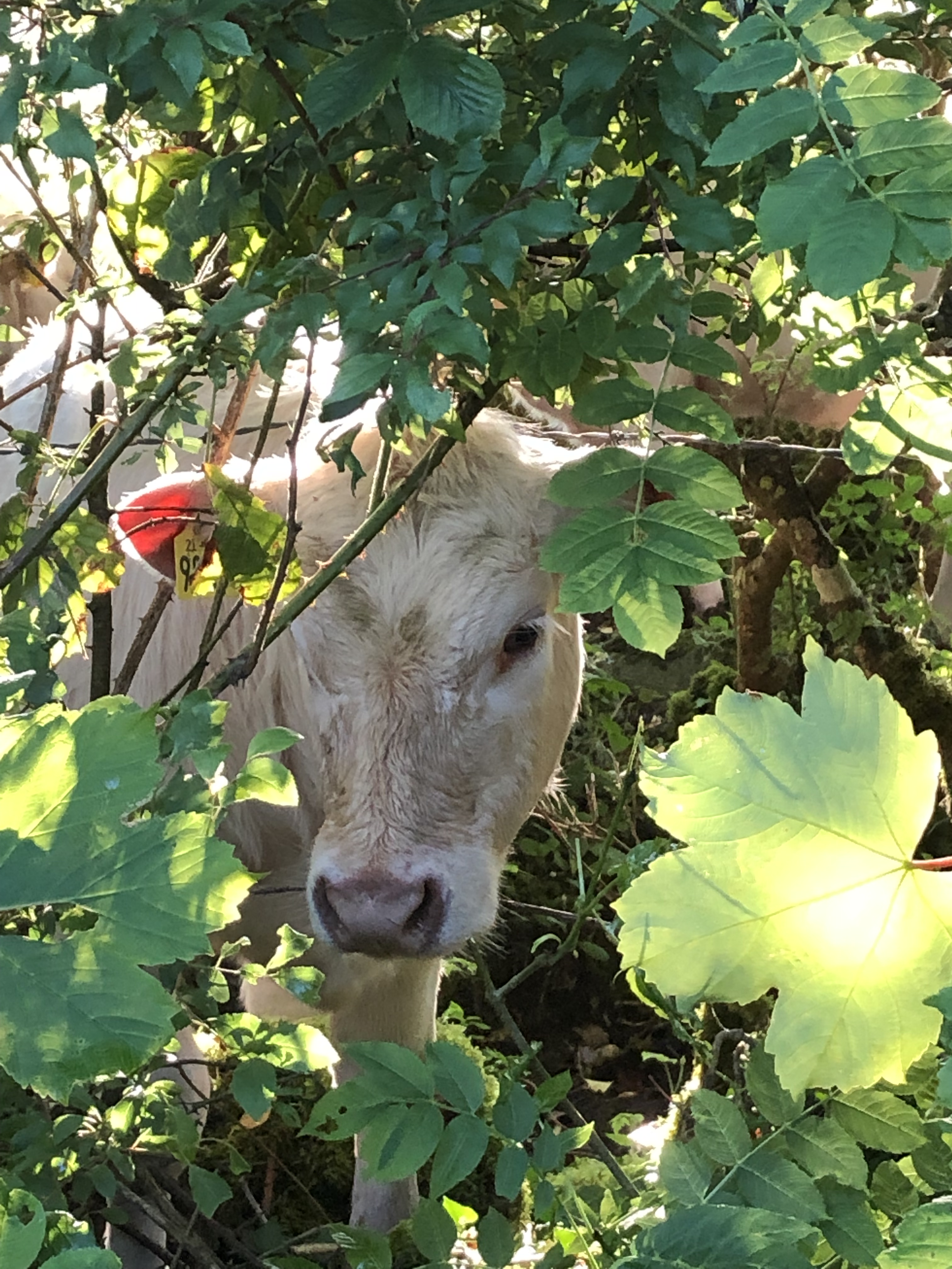 Auf unserer angrenzenden Weide stehen zur Zeit elf Rinder. Fünf Mutterkühe und sechs Kälber. Eine Kuh hat Zwillinge bekommen und säugt sie beide noch. Hier ist ein besonderes Foto geglückt, welches beide Jungtier direkt beim säugen zeigt.