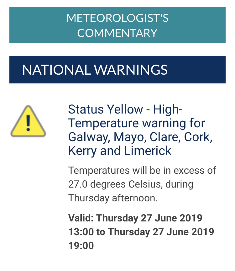 Das Wetter lässt es in Irland viel regnen, aber nicht immer und auch hier ist eine Hitzewelle ausgebrochen. Gut – die Temperaturen sind nicht vergleichbar mit denen aus Deutschland, Frankreich oder Spanien, aber es gab hier schon wieder eine gelbe Warnstufe für die Küste. Bei uns im Landesinnere wurde es nicht ganz so heiss.