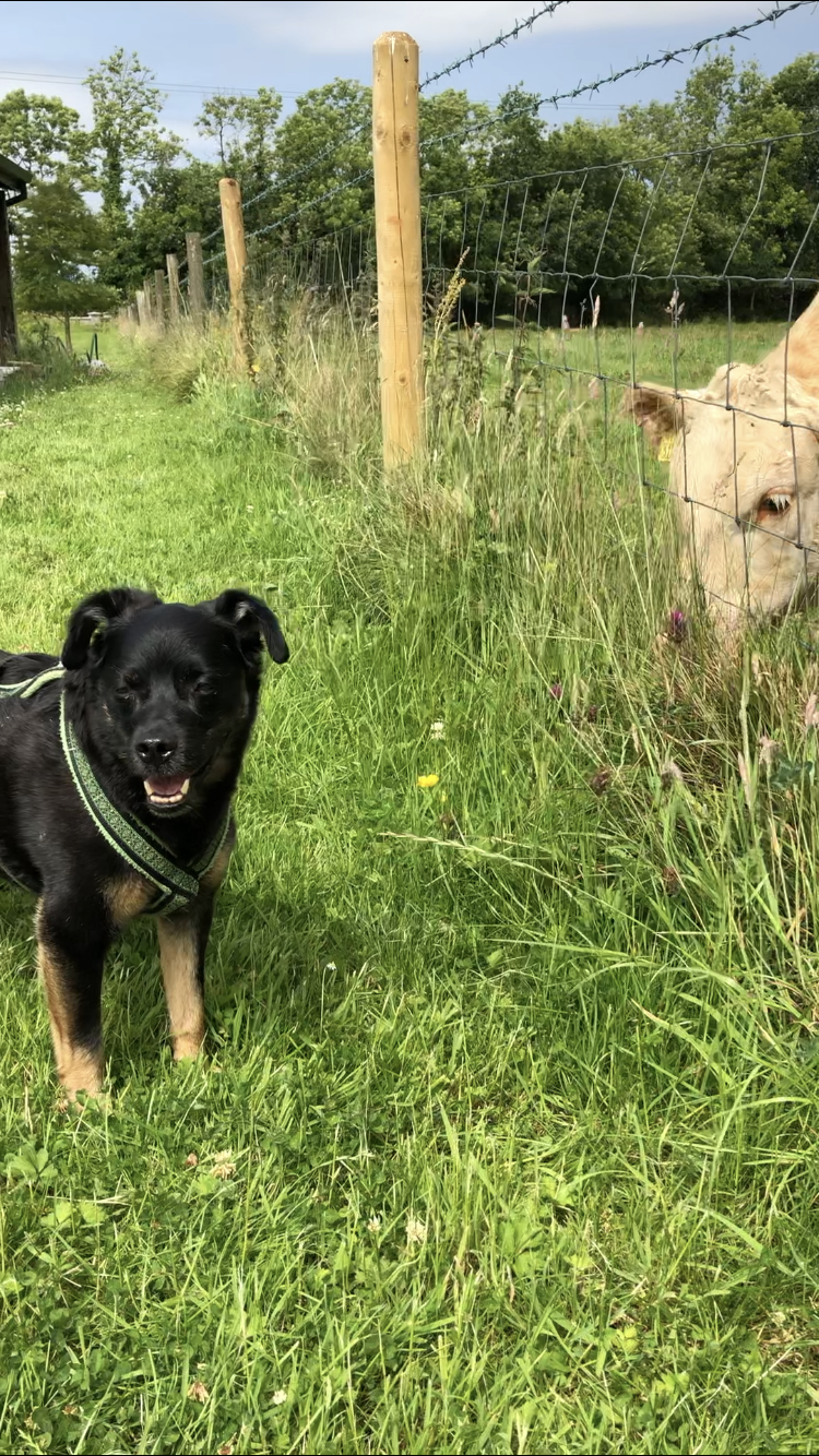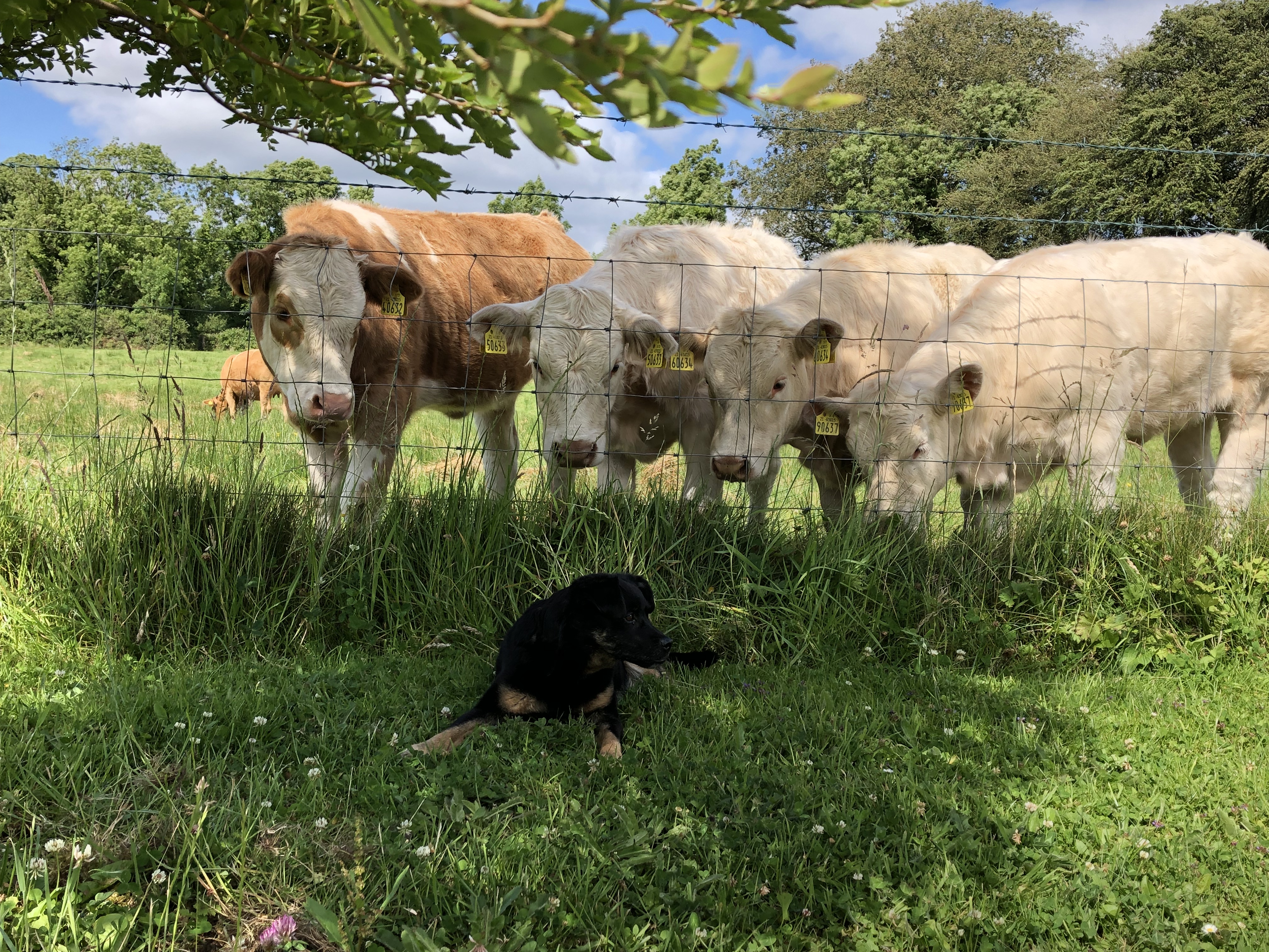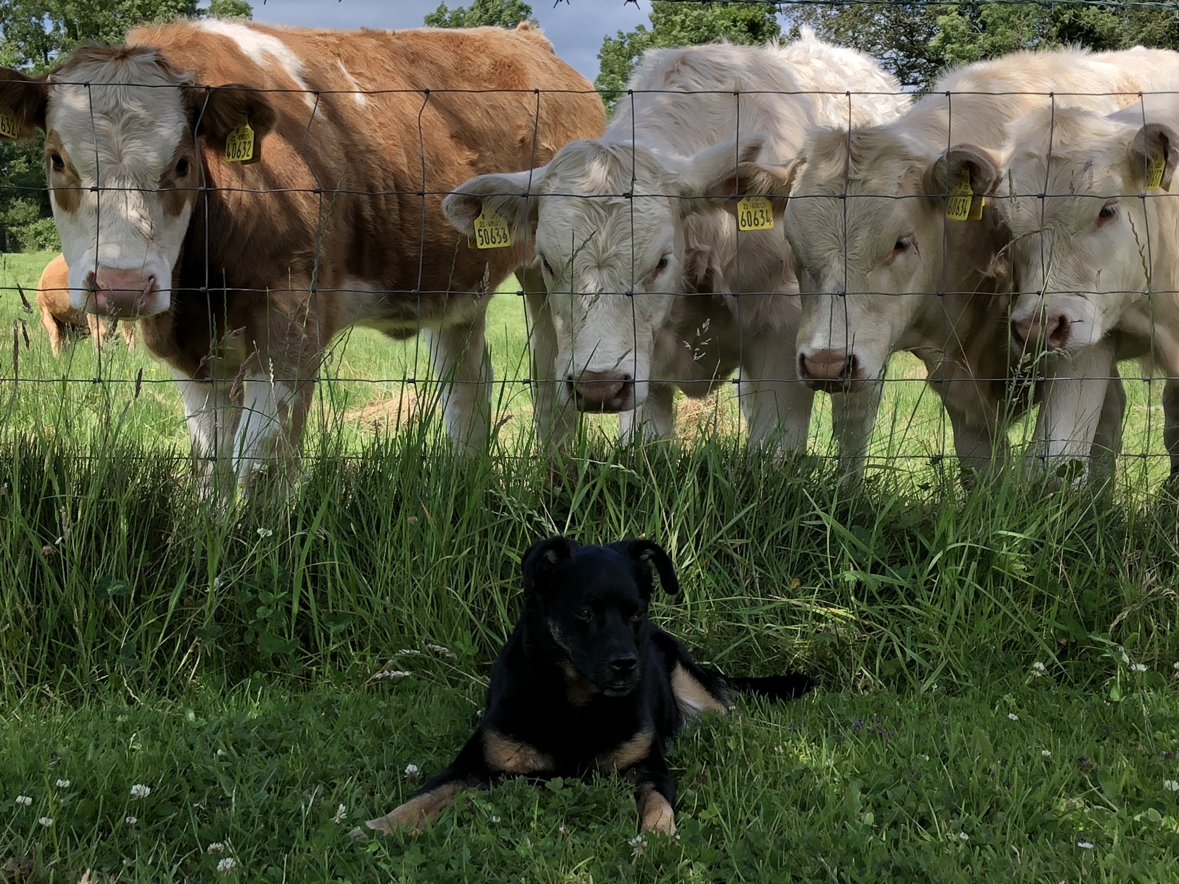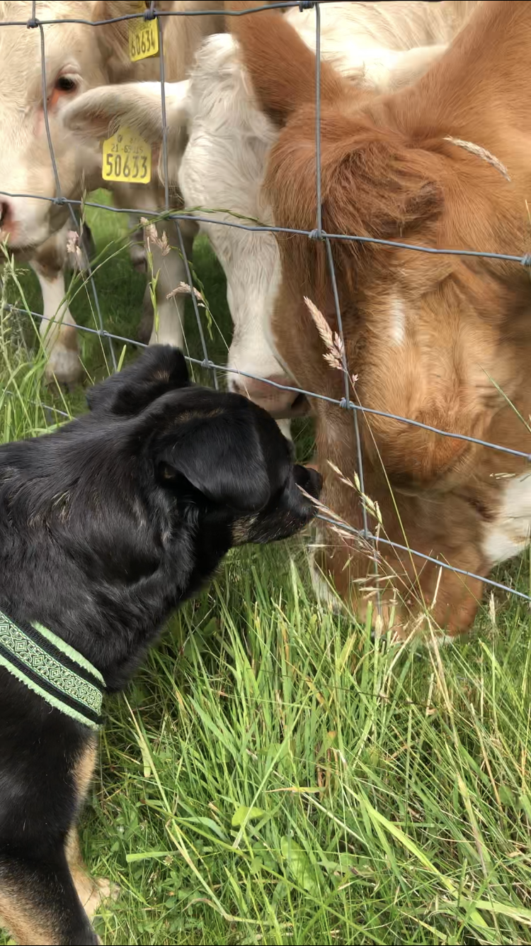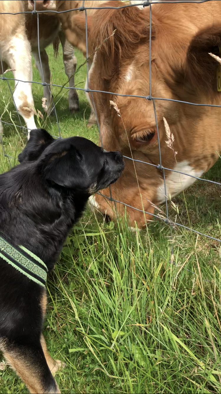 Ansonsten ist Rocky der heimliche Star bei den Rindviechern. Egal wo er läuft oder liegt alle Augenpaare sind stets auf ihn gerichtet. Es wird sogar durch den Zaun gebusselt.