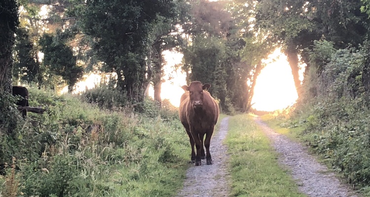 Manchmal kommt es in der Früh vor, dass einem eine muhende Kuh den Weg versperrt, denn sie muss erst dafür sorgen, dass die Kälbchen passieren können, bevor man weiter darf.