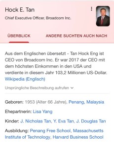 Ob nun Broadcom einen Senior Director benötigt, werden die nächsten Wochen zeigen oder ob es ein Paket wird. Es ist alles offen und wir sind durch diese Situation hier im Haus zum Stillstand gekommen, obwohl die Planning Commission uns für alle Neubauten ein O.K. gab.